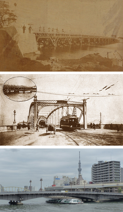 Today, the number of bridges on the Sumida River south of Senju Bridge amounts to nineteen.